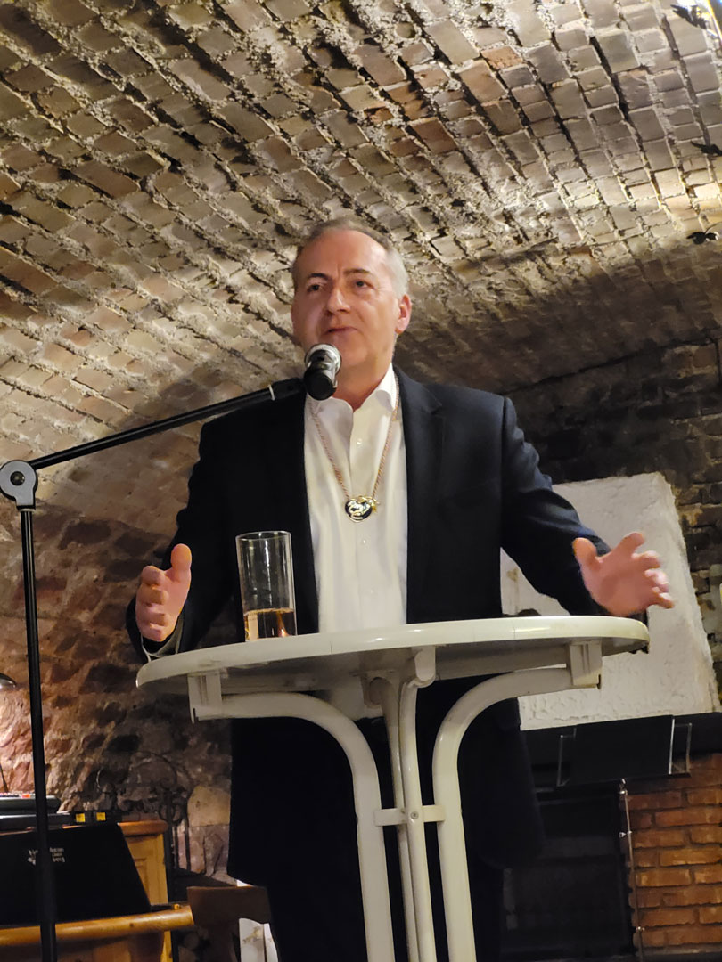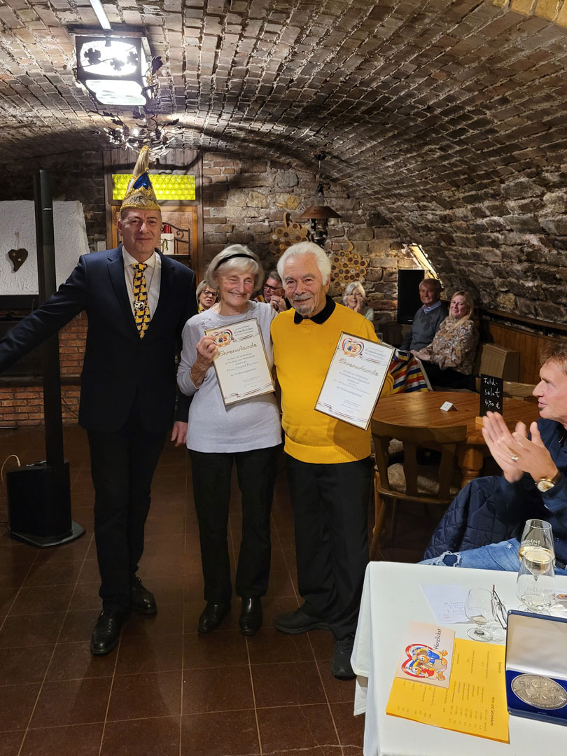 Dass sich die Mitglieder bei ihren Entenbrüdern wohlfühlen, brachte u. a. Renate Fuchs bei ihrer Ehrung für 22-jährige Mitgliedschaft durch ihre Dankesworte zum Ausdruck. Auch der für 44 Jahre Mitgliedschaft ausgezeichnete Bernhard Sans, der extra zu diesem Abend aus Hamburg angereist war, betonte spontan seine Verbundenheit zum CVE und ermunterte die Entenschar in ihrer Begeisterung für die Nackenheimer Fastnacht nicht nachzulassen. Die zu neuen Ehrenmitgliedern ernannten Ingrid Becker und Dr. Schawasch Owassapian bedankten ebenfalls die schöne Zeit in den letzten 50 Jahren mit und bei ihren Entenbrüdern. Voller Vorfreude auf die Jubiläumskampagne verließen die letzten Gäste weit nach Mitternacht den gemütlichen Keller des Weinguts.