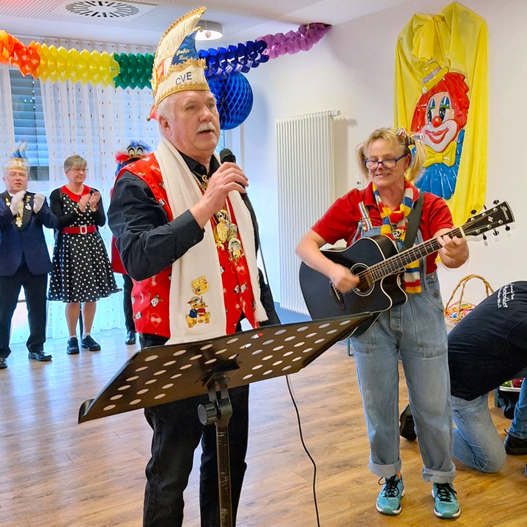 CVE-Ehrenvorsitzender Alexander Leber und die aktiven Vereinsmitglieder Erwin Kerz sowie Helmut Sudrow unterhielten die Seniorinnen und Senioren mit großartigen Vorträgen und Stimmungsliedern. Die CVE-Dancing-Ducks mit Trainerin Maren Senhen zeigten ihren schwungvollen Gardetanz aus der aktuellen Kampagne und mit dem BCV-Kinderballett tauchte das begeisterte Publikum schließlich in die Welt der Piraten ab. Zum Abschluss übergab die Sprecherin der Entenschwestern Helga Bernard eine Spende an das Seniorenzentrum – aus den Einnahmen des CVE-Adventsfensters 2024.