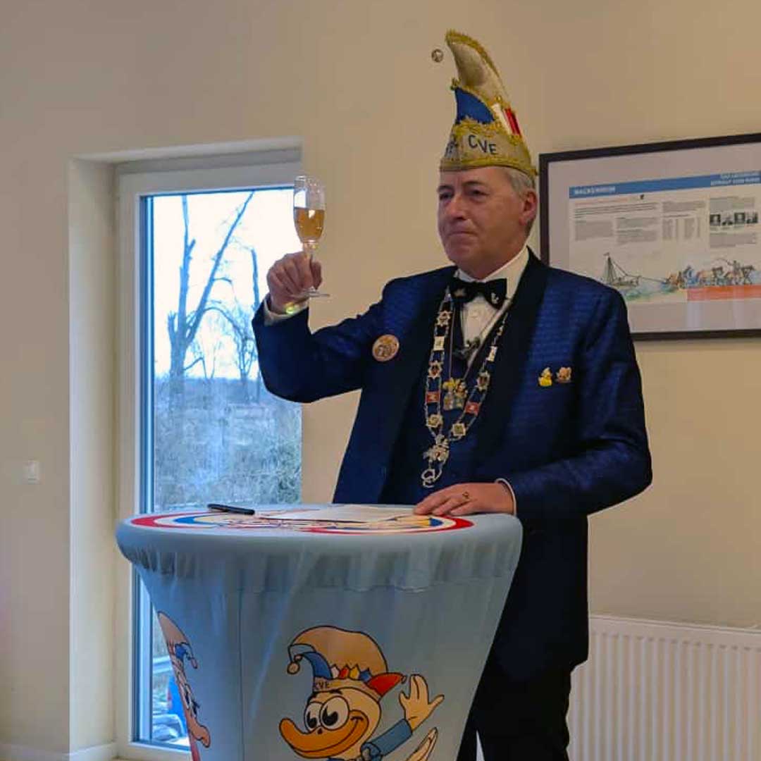 Am ersten Sonntag des neuen Jahres lud der CVE seine aktiven Mitglieder zum Sektempfang und stimmte die Gäste auf die Kampagne 2026 ein. Der Saal der Gaststätte „Zum Leinreiter“ war gut besucht. Die Hausherren Jakob und Otto Sans unterstützten die Entenbrüder nach Kräften, um allen einen angenehmen Aufenthalt zu gewährleisten.